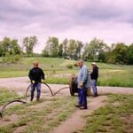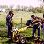 In the Spring of 2002 we ran power to all resident campsites, a visitor hookup, and the shed. The distribution included 400amp main line running 1200 feet of 350URD cable (3 strands the total thickness of a soda can) to a distribution panel. From the panel, 60amp service is run to a total of 6 locations. Each resident site is equipped with a 30amp RV hookup and an additional 20amp outlet.